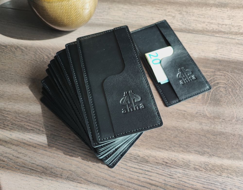 Natūralios odos, pastandinto korpuso sąskaitinė. Atviro / kišenės tipo sąskaitinė yra lengva ir patogi nešiojimui ir pinigų užkišimui.